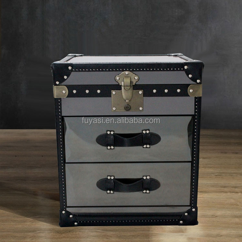 Mesita de noche de madera maciza con revestimiento negro, laca de acero inoxidable, muebles para el hogar para sala de estar